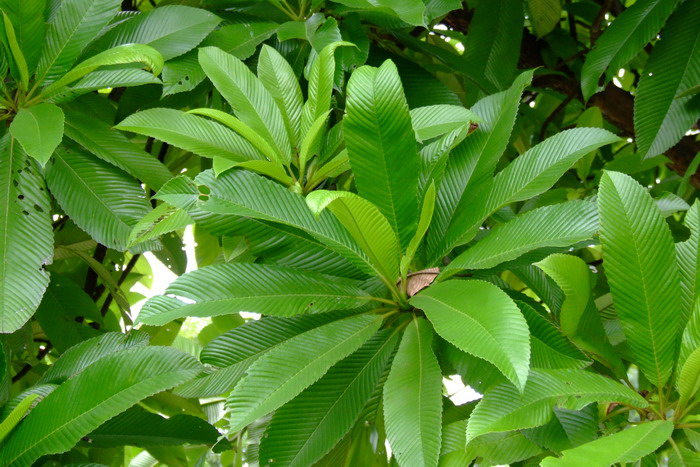 形态特征(Description):常绿乔木高25米,胸径宽约1米,树皮红褐色,平滑,大块薄片状脱落;嫩枝粗壮,有褐色柔毛,老枝秃净,有明显的叶柄痕迹。叶薄革质,矩圆形或倒卵状矩圆形,长15-40厘米,宽7-14厘米,先端近于圆形,有长约1厘米的短尖头,基部广楔形,不等侧,上下两面初时有柔毛,不久变秃净,仅在背脉上有毛,侧脉25-56对,干后在上下两面均突起,脉间相隔5-8毫米;第二次支脉近于平行,与第一次侧脉斜交,脉间相隔2毫米,在下面与网脉均稍突起,边缘有明显锯齿,齿尖锐利;叶柄长5-7厘米,有狭窄的翅,基部稍扩大,多少被毛。花单生于枝顶叶腋内,直径约12-20厘米,花梗粗壮,被毛;萼片5个,肥厚肉质,近于圆形,直径3-6 厘米,外侧有柔毛,花瓣白色,倒卵形,长7-9厘米;雄蕊发育完全,外轮数目很多,内轮较少且比外轮长,无退化雄蕊,花药长于花丝,顶孔裂开;心皮16-20个,花柱线形,顶端向外弯;胚珠每心皮多个。果实圆球形,直径10-15厘米,不裂开,宿存萼片肥厚,稍增大;种子压扁,边缘有毛。